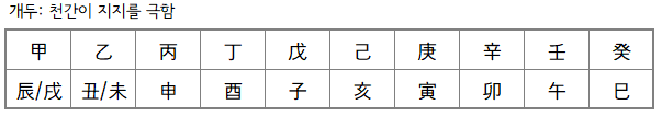 개두(蓋頭)는 머리를 덮는다는 뜻으로 천간에서 지지를 극하는 것을 뜻합니다.