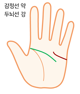 극단적으로 감정선이 길고 두뇌선이 짧고 약하면 이성적 판단이 적습니다.
