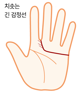 감정선이 길면 정이 많고 애정관계가 오래 지속되며 짧으면 자기중심적이며 이성적입니다.