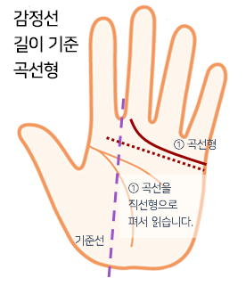 감정선은 먼저 곡선형과 직선형을 구분합니다.