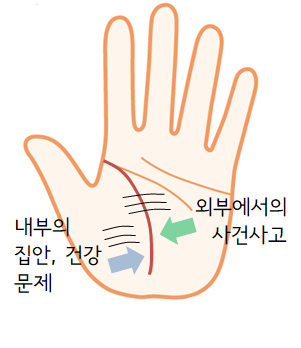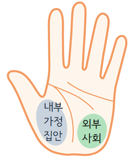 생명선 안쪽은 내부적인 요소로 가정, 집안을 뜻하고 생명선 바깥은 외부, 사회를 상징합니다.