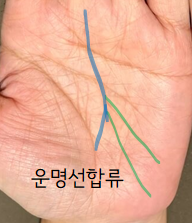 초년의 운명선에서 합류하는 선은 나를 도와주는 귀인이나 반려자 또는 좋은 직장이 되기도 합니다.