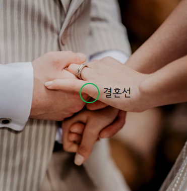 일반적으로 결혼선이라 불리는 선은 새끼손가락 아래의 수성구 외각에 위치합니다.