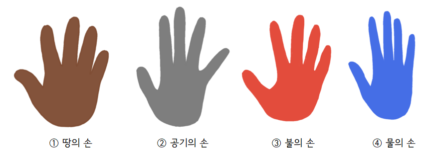 땅의 손 손바닥에 물의 손 손가락을 합친듯한 모양입니다.