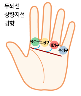 두뇌선의 상향지선은 개운선의 역할을 하므로 많을수록 좋습니다.