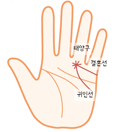 결혼선과 귀인선이 태양구에서 만나 별 문양을 이룹니다.