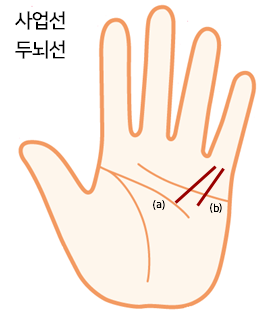 ⒝ 두뇌선 위에서부터 사업선이 시작되면 자신이 하고 싶은 일이 인생 후반기에 생기게 됩니다.