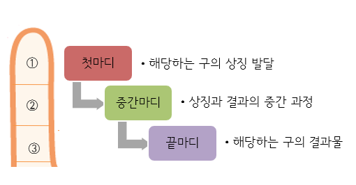 손가락 첫마디는 해당하는 구의 발달능력을 보고 중간마디는 중간 과정 끝마디는 결과물이 됩니다.