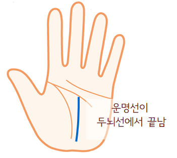 운명선의 두뇌선까지만 있다면 40세 이전에 성공하지만 이후에는 운세가 정체됩니다.