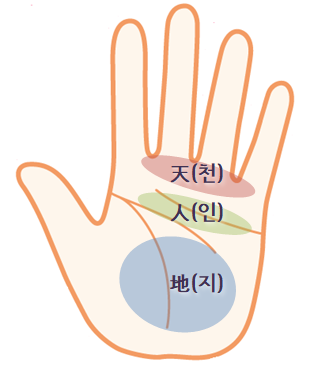 손금은 상단, 중단, 하단을 나누어 하늘, 사람, 땅의 영역으로 나누어서 읽기도 합니다.