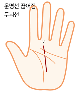 ⒞ 두뇌선에서 운명선이 끊어지고 두뇌선에서 운명선이 나타남