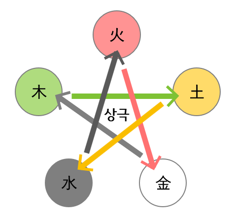 오행은 서로 생하기도 하지만 반대로 극을 하기도 합니다.
