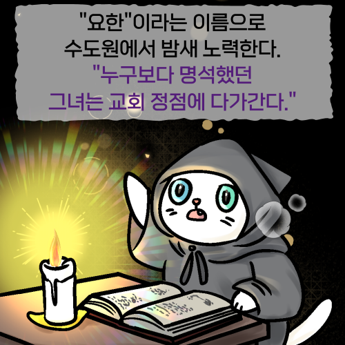 조안나는 여성이라는 이유로 배움이 허락되지 않던 시대에 남장을 하고 교회로 들어갔답니다.