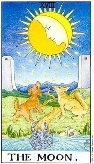 알고 있는 상황이 전부가 아니다. 숫자 18 1 + 8 = 9 은둔자 카드는 현실세계의 지식적인 완성으로 완성은 끝이니 더 이상의 발전이 없다. 여태까지는 잘 해왔지만 아무것도 할 수 없다. 달 카드는