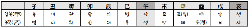 갑목(甲), 을목(乙)의 십이운성 운지법